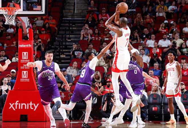 北京时间10月9日,NBA季前赛,火箭VS爵士。这场比赛杜兰特只打了三节就拿到20分,第三节单节4中4拿到12分太爆炸,KD这位37岁的得分手仍然是联盟前十的超巨,相信火箭跟他谈提前续约会成功的,毕竟他是火箭最需要的关键时刻得分手。